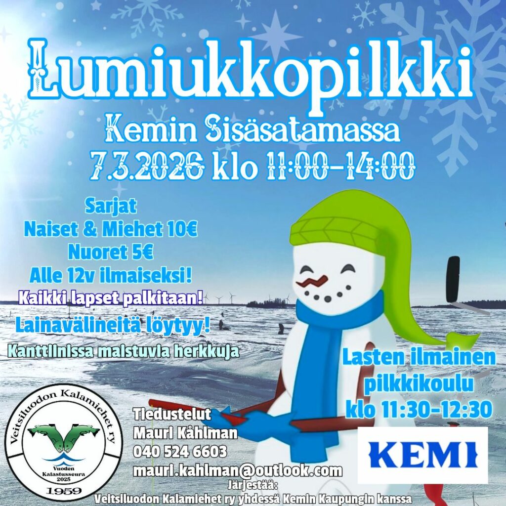 Tervetuloa Lumiukkopilkkiin lauantaina 7.3.2026 upeisiin merimaisemiin Kemin Sisäsatamaan.